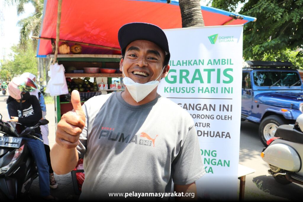 Hal senada juga diungkapkan Samin (39), seorang pedagang Bakso asal Wonogiri, Jawa Tengah, yang biasa mangkal di Jalan Kesehatan Raya, Bintaro, Jakarta Selatan. Ia sangat senang saat tim Dompet Dhuafa langsung datang dan mengatakan hari ini dagangan baksonya gratis untuk masyarakat umum.
