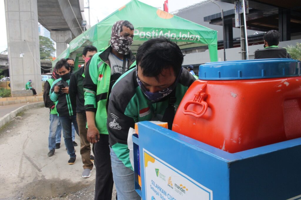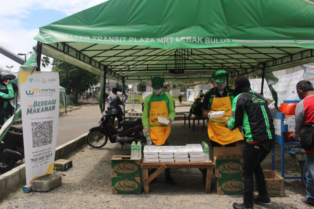 Jakarta—Warteg Mobile, buah kerja sama Lembaga Amil Zakat Nasional Bangun Sejahtera Mitra Umat (LAZNAS BSM Umat) Mandiri Syariah dan Dompet Dhuafa kali ini mengunjungi wilayah pangkalan ojek online (ojol) di Poins Square Mall, Lebak Bulus, Cilandak, Jakarta Selatan (30/11/2020).