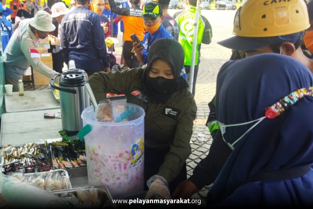 Pelayanmasyarakat.org, JAKARTA - Dompet Dhuafa melalui Program Dapur Keliling (Darling) membagikan 300 paket kudapan dan minuman segar pada acara apel kesiapsiagaan menghadapi musim hujan di DKI Jakarta, pada Rabu (13/10/21).