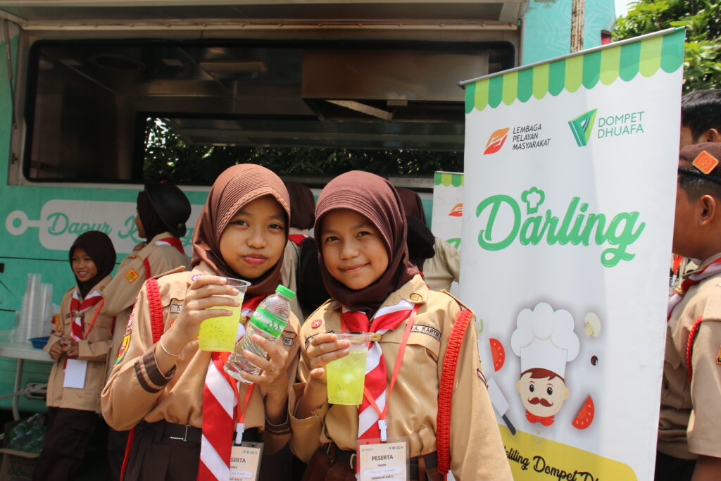 Pada kesempatan ini, program Dapur Keliling (Darling) Lembaga Pelayan Masyarakat (LPM) Dompet Dhuafa membagikan 200 porsi makanan ringan, minuman hangat dan dingin yang disajikan untuk melayani adik-adik peserta saat perlombaan berlangsung.