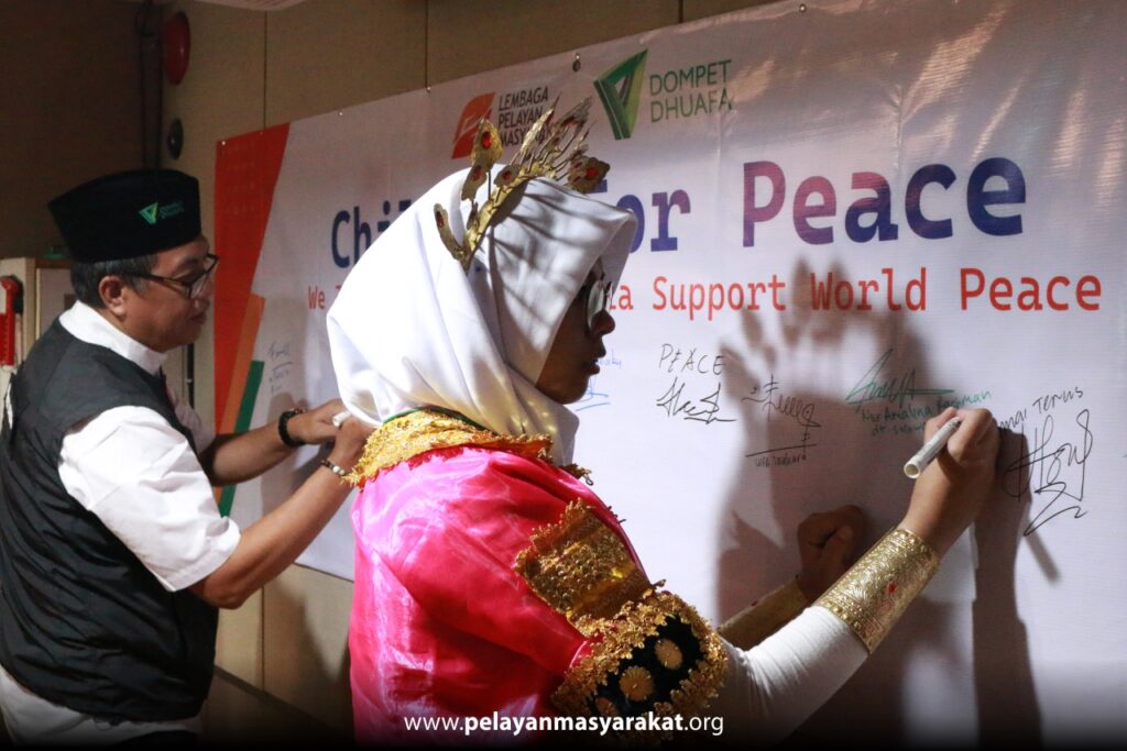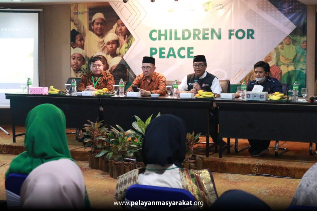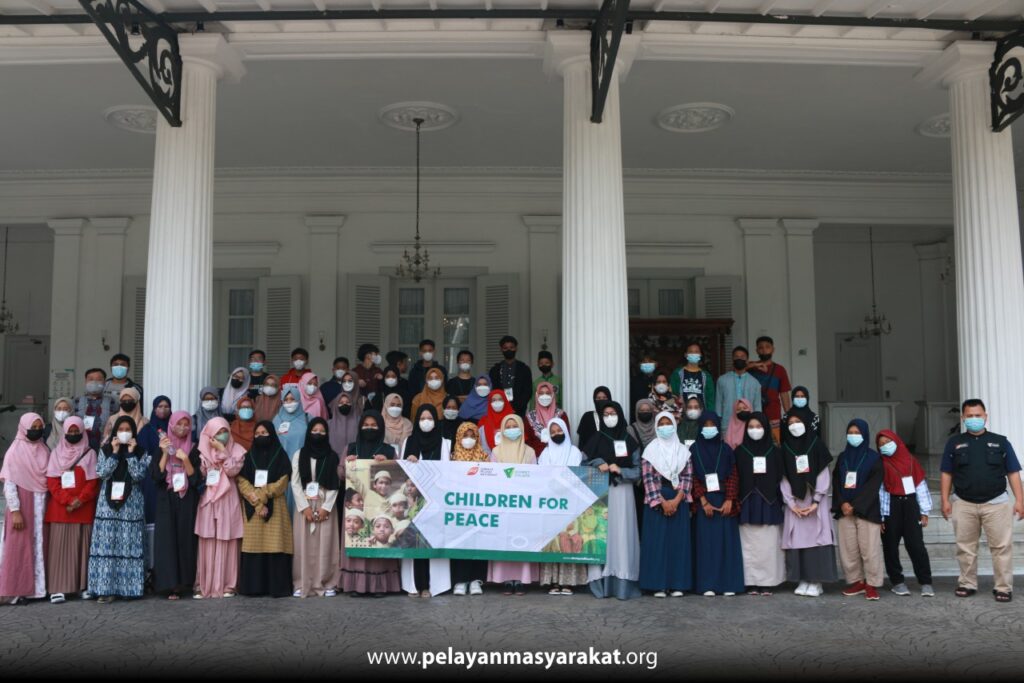 Pelayanmasyarakat.org, JAKARTA — Sebagai upaya menciptakan perdamaian dunia, Lembaga Pelayan Masyarakat (LPM) Dompet Dhuafa menggelar program Children For Peace. Bertema “Yatim dan Perdamaian Duniaâ€, Acara ini mengumpulkan 41 anak yatim beserta wali/ibunya yang berasal dari berbagai daerah di wilayah Nusantara dengan mengenakan pakaian khas daerahnya masing-masing. Acara berlangsung selama 5 (lima) hari sejak Senin hingga Jumat (10-14/10/2022) di kawasan Jakarta dan Bogor.