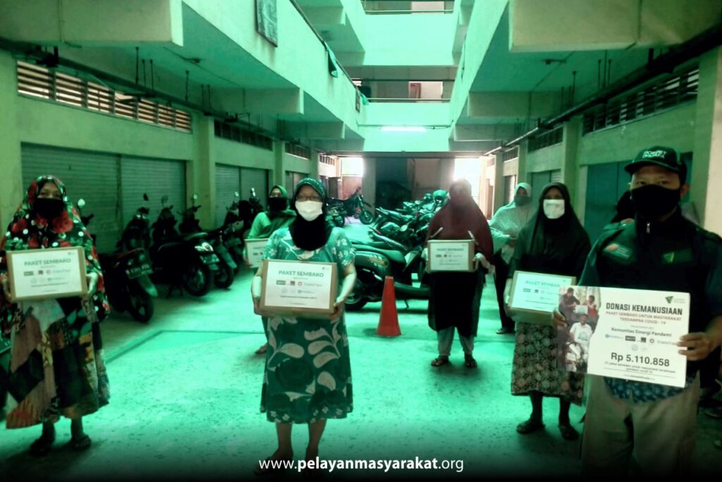 Bantuan disalurkan oleh tim Lembaga Pelayan Masyarakat (LPM) Dompet Dhuafa pada 27 Orang warga yang tinggal di rumah susun yang beralamat di Jalan Komarudin I No.77, RT.12/RW.5, Kelurahan Penggilingan, Kecamatan Cakung, Kota Jakarta Timur. Sebanyak 7 Lembaga berkolaborasi sebagai Komunitas Sinergi Pandemi yaitu Mengajak Gerak, Melek APBN, ORCA, Transfree, Himpunan Mahasiswa Ekonomi Universitas Pertamina (HENNA), Kemenkeu Muda, dan Kitabisa.com.