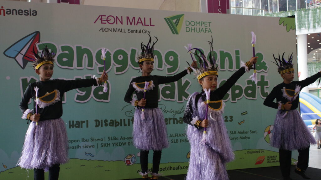 Dalam memperingati Hari Disabilitas Internasional, Lembaga Pelayan Masyarakat menyelenggarakan Panggung Seni & Karya Anak Hebat pada Sabtu (9/12) di AEON MALL Sentul City, Bogor. Kegiatan ini mengajak 10 Sekolah Luar Biasa (SLB) yang ada di Jabodetabek untuk menampilkan bakat dan karya siswa-siswinya.