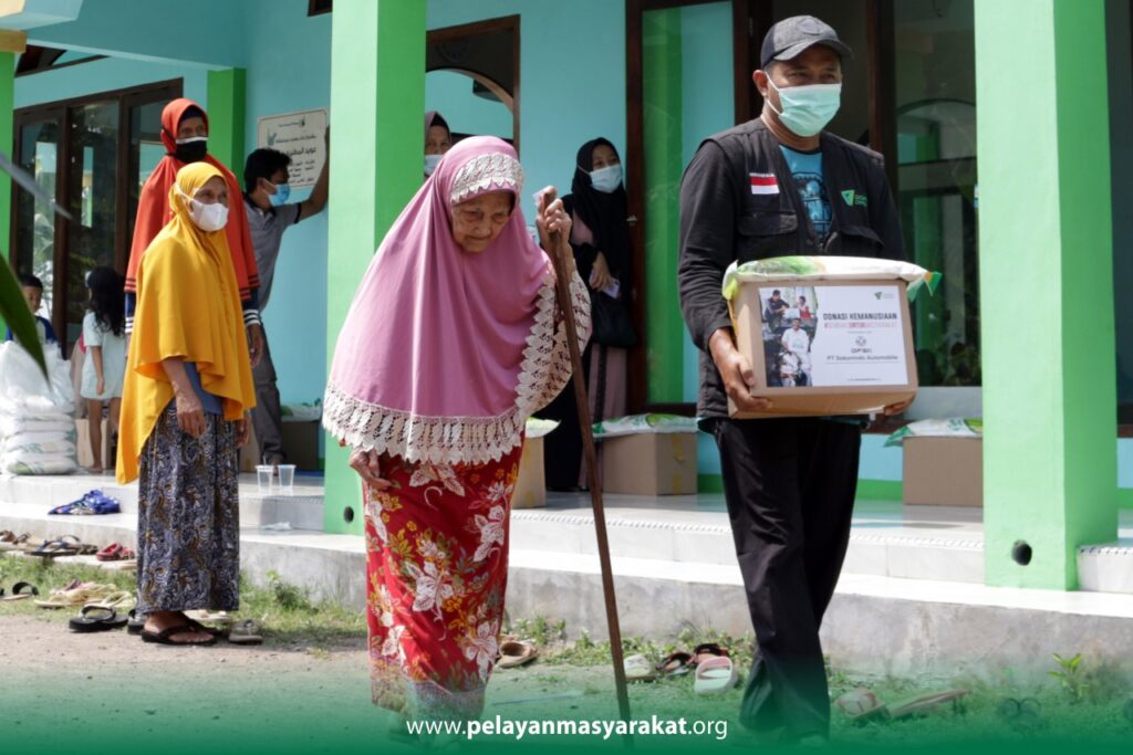 Hasil donasi tersebut disalurkan dalam bentuk paket sembako dan uang santunan kepada masyarakat yang membutuhkan. Bantuan paket sembako dan santunan ini diberikan kepada 77 penerima manfaat yang tersebar di Kampung Lubang buaya, Desa Lubang Buaya, dan Kampung Cisaat, Desa Kertarahayu, Kecamatan Setu, Bekasi.