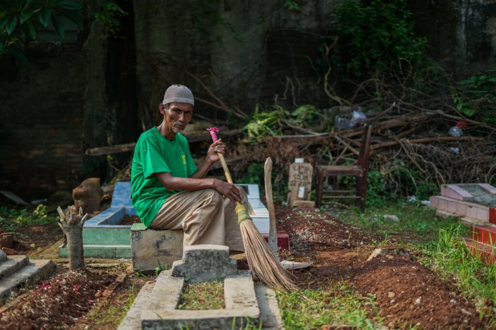 Selain bertugas gali kubur, pekerjaan sebagai kuli bangunan juga pernah ia lakoni. Tapi energinya sudah tidak sekuat dahulu. Kini, ia abdikan hidupnya sebagai Marbut di Musholla Nurul Amal, Jl. Dewi Sartika, Gang Sepat, RT 02/RW 06, Margahayu, Bekasi Timur.