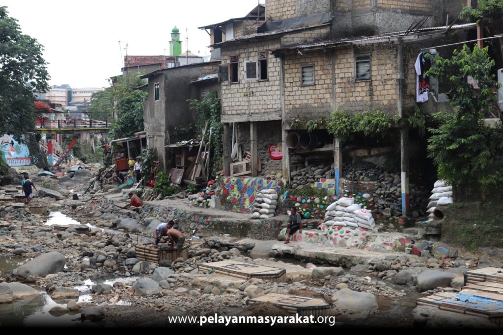 Kampung Kebon Jukut dijuluki "Kampung Labirin" karena lokasinya yang berada di tepi sungai dan sangat padat dengan rumah warga, sehingga membuat jalan-jalan di kampung tersebut terlihat seperti labirin. Sebagian warga bekerja sebagai pedagang kaki lima, pegadang asongan, buruh harian, dan pengumpul batu kali. Yoyoh (35) salah satu penerima manfaat yang kesehariannya berdagang soto, sangat senang mendapatkan bantuan sembako.