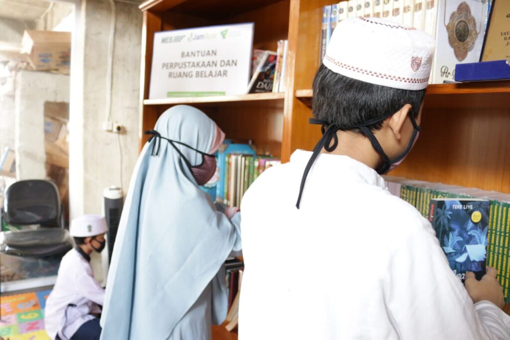 Jakarta - Jamkrindo Syariah melalui Dompet Dhuafa memberikan bantuan satu ruang perpustakaan. Bantuan meliputi ruang belajar, 1 set komputer serta koleksi buku bacaan, buku ilmiah dan kitab-kitab (22/09).