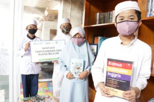 "Alhamdulillah sekarang kami sudah punya ruang perpustakaan, buku-buku untuk belajar dan menambah ilmu dan juga 1 unit komputer untuk belajar dan mengerjakan tugas sekolah. terimakasih kasih Jamkrindo Syariah dan Dompet Dhuafa".