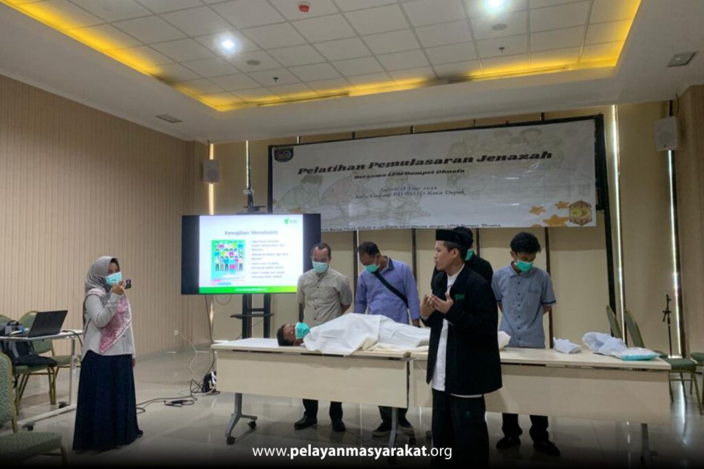 Pelayanmasyarakat.org, DEPOK-- Dalam rangka meningkatkan pengetahuan dan keterampilan karyawan dalam penyelenggaraan pengurusan jenazah, Keputerian DKM Baitul Mua'fi RSUD Kota Depok bersama Bagian Pemulasaraan Jenazah (Barzah) Lembaga Pelayan Masyarakat (LPM) Dompet Dhuafa menyelenggarakan pelatihan pemulasaraan jenazah, pada Selasa (28/6).